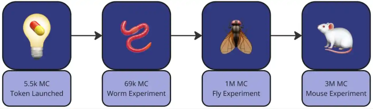 在 Pump.science 上,提交测试干预措施的药品开发商与科学家需要支付一定数量的 SOL 作为实验费用。这些 SOL 将用于购买第一批代币,待方案达到一定市值阈值后,便会在 Wormbot 平台上进行实验。这里先提下 Wormbot,Wormbot 是一个低成本、快速实验平台,用于以低廉的成本测试大量潜在的长寿疗法。