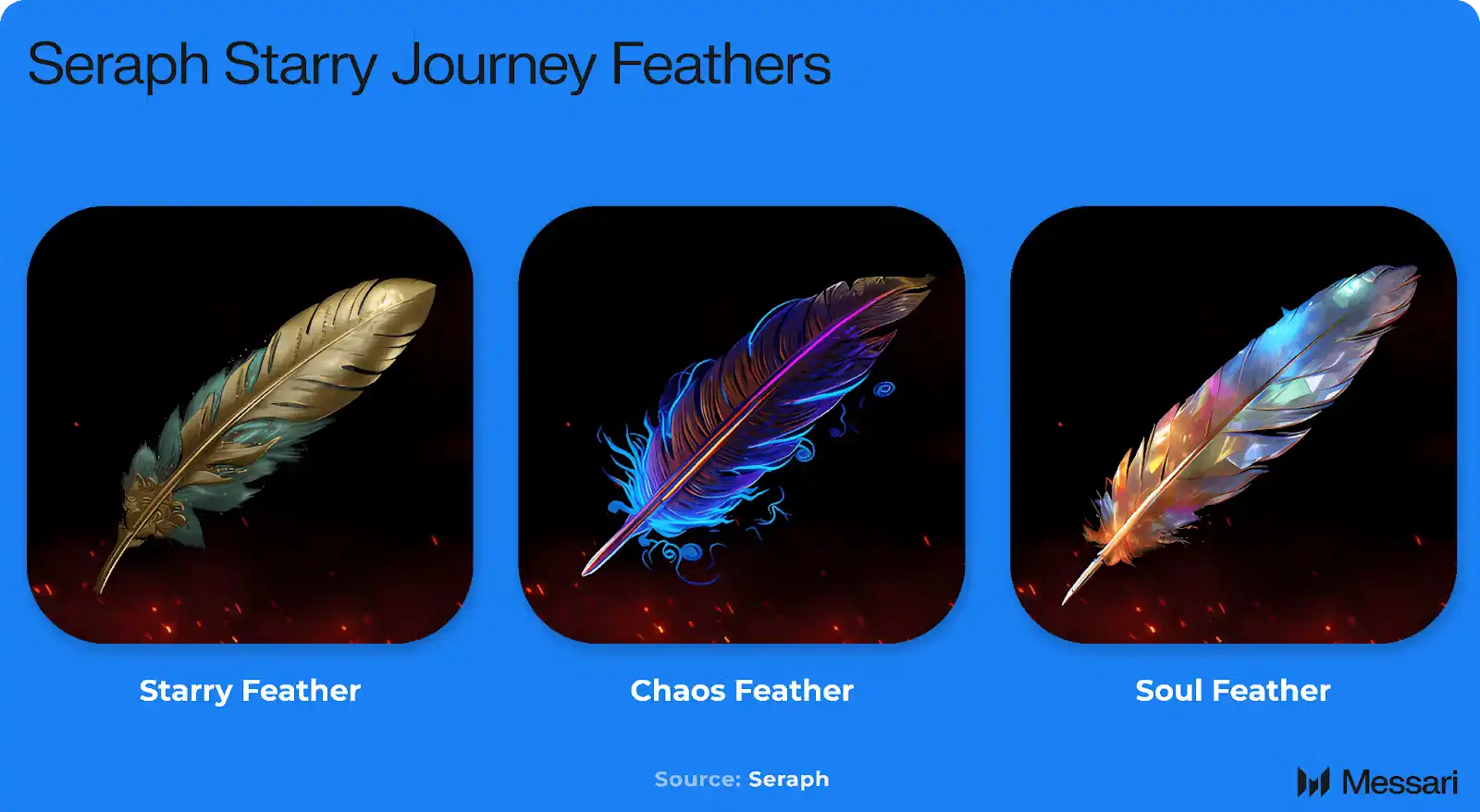 星羽分为三个稀有等级,并且设为相应的 SERAPH 代币兑换比例: