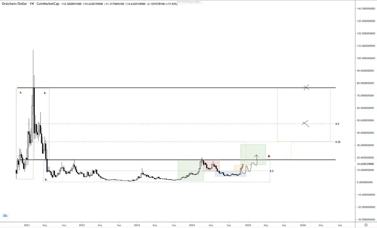 $ORAI 是一个元老级的 AI 代币。上周,它在短周期市场结构中成功收复了阶段 4(橙色区域),因此我再次买入了一些仓位。