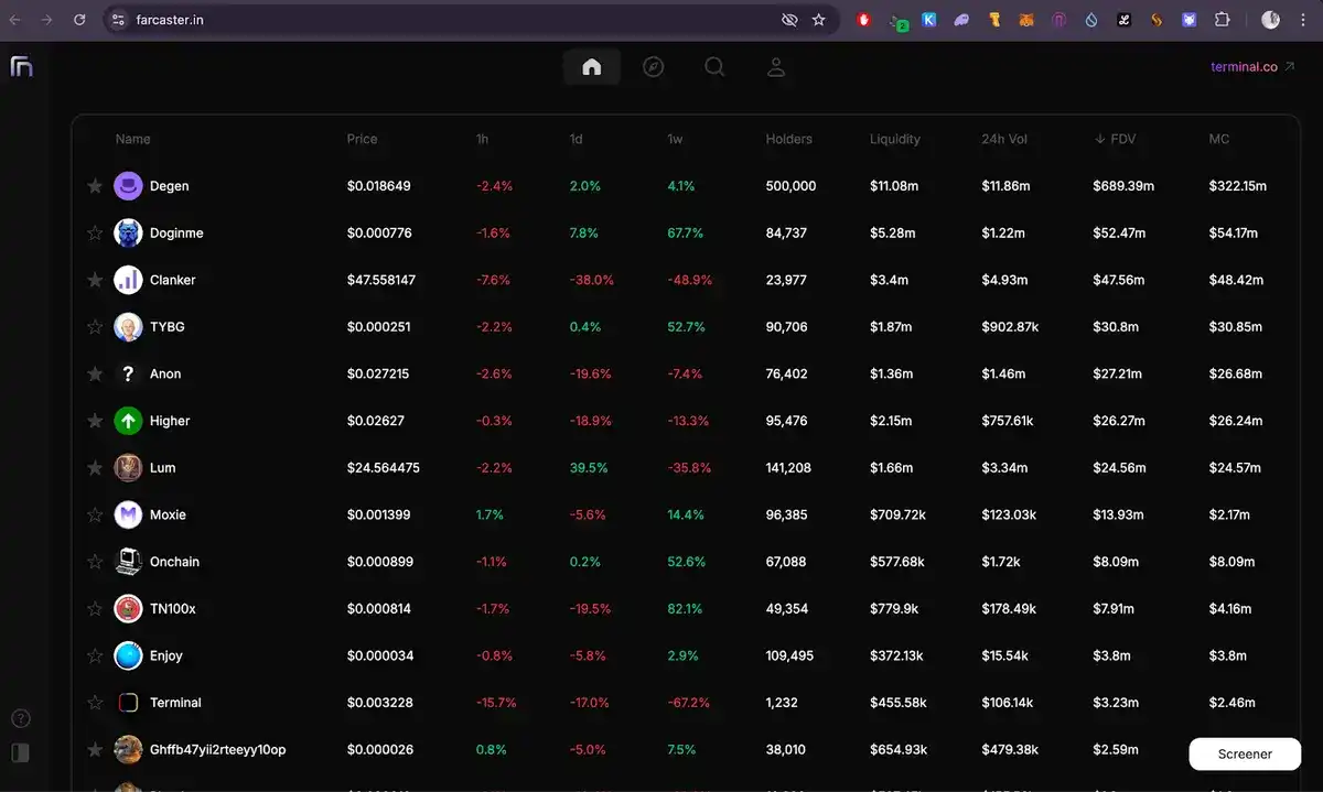 在构建了 Farcaster Index 之后,Terminal 是 Carlos 推出的最新代币平台,它从整个 Base 生态系统中拉取数据,并使用户能够通过自己的 DEX 方便地进行互动。