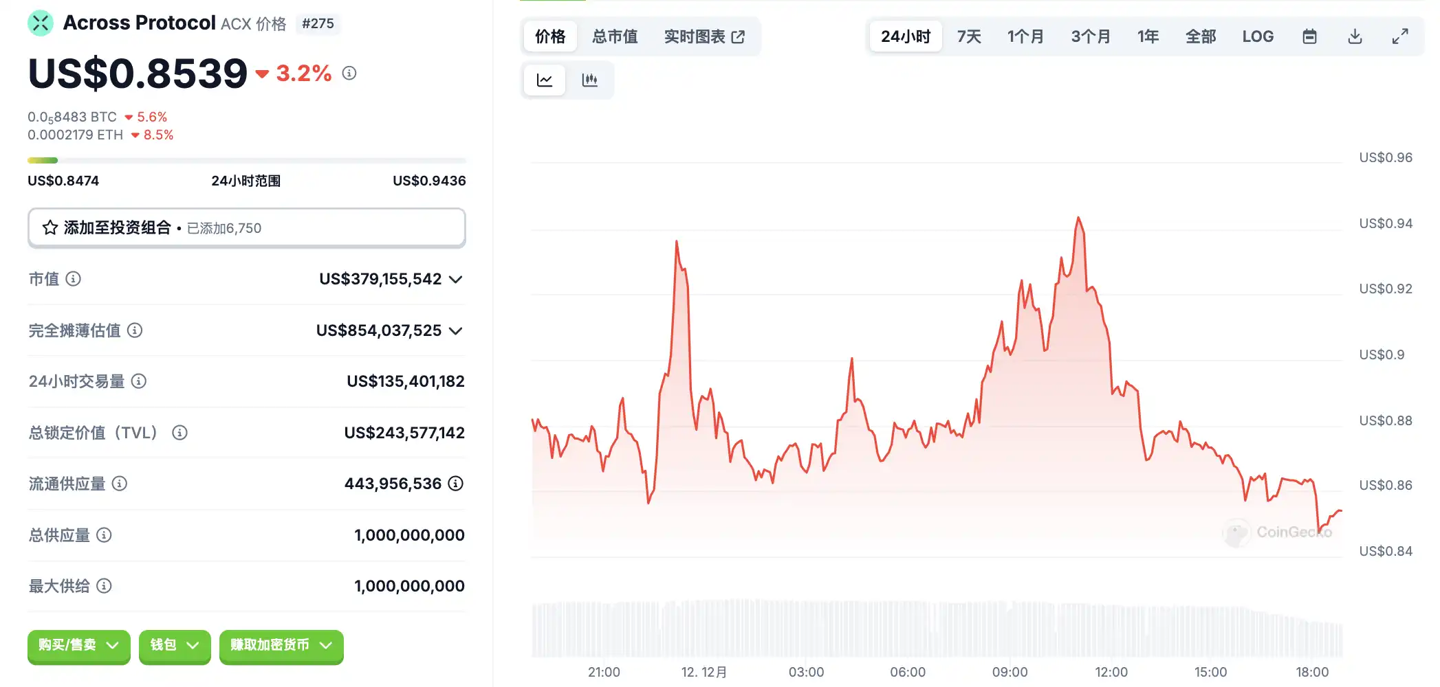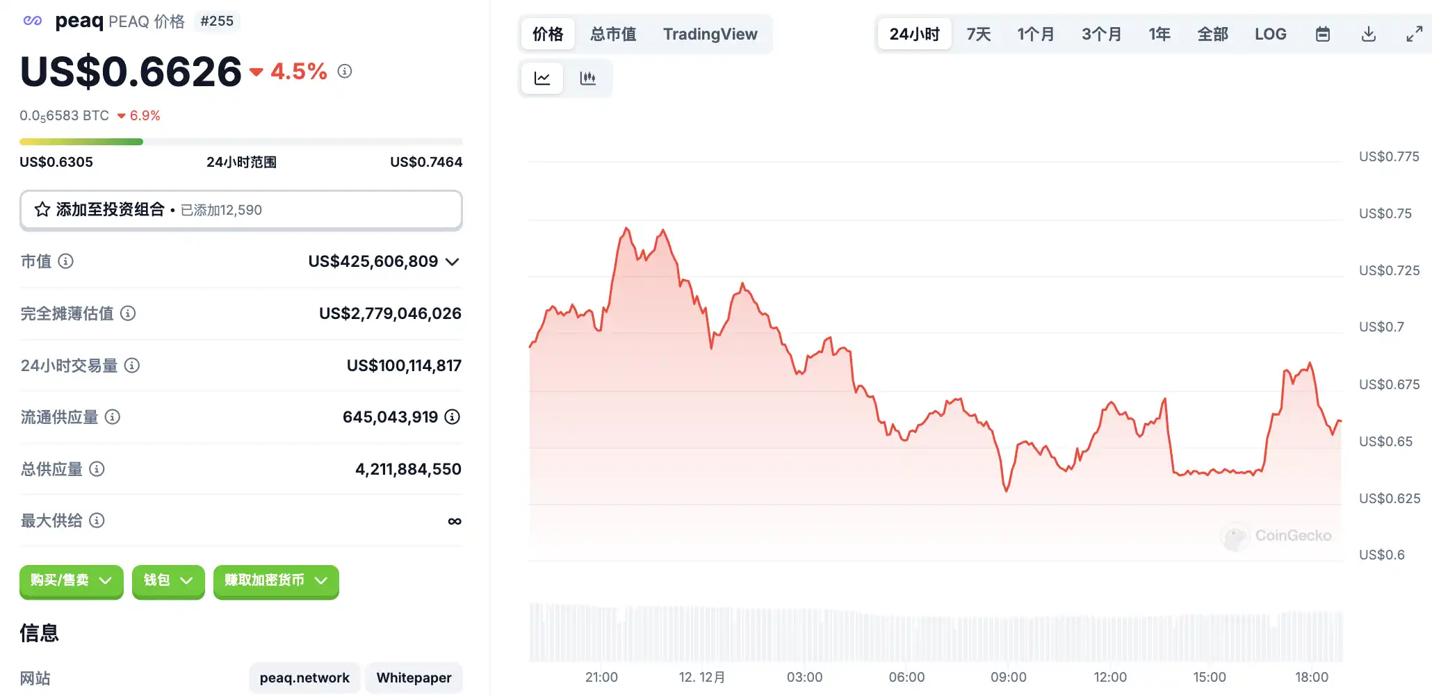 12 月 12 日代币波动情况,按交易量筛选并排列
