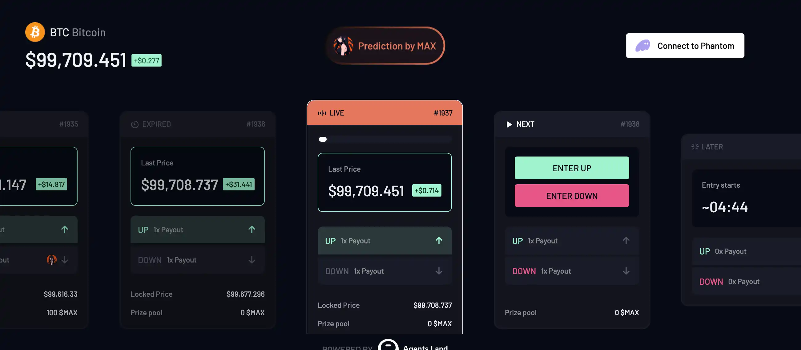 不过,她的独特个性在于,自己是一个 BTC 狂热多头,你和她聊天对话她会不断给你安利比特币的好处;同时,她自己也自带了一个比特币的预测市场,你只需要点击她的头像,便可以跳到这个预测市场页面,用$MAX 代币对比特币未来的价格进行预测和投注。