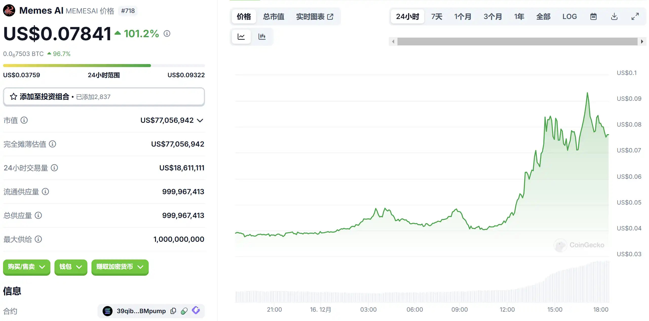 涨幅 97 个基点。FARTCOIN 如今已成为一个重要的讨论话题,主要是因为其近期市值飙升,超过了 GOAT,成为第二大人工智能模因币。尽管市值有所下降,但 FARTCOIN 的文化相关性和模因强度使其一直备受关注,许多人预测它可能成为排名前 25 的加密货币。该币的受欢迎程度源于其荒诞性和高回报潜力,常被与狗狗币等其他成功的模因币相提并论。围绕 FARTCOIN 的说法表明,它可能成为当前加密周期中的主要参与者,相关讨论强调了其达到新高度的潜力。