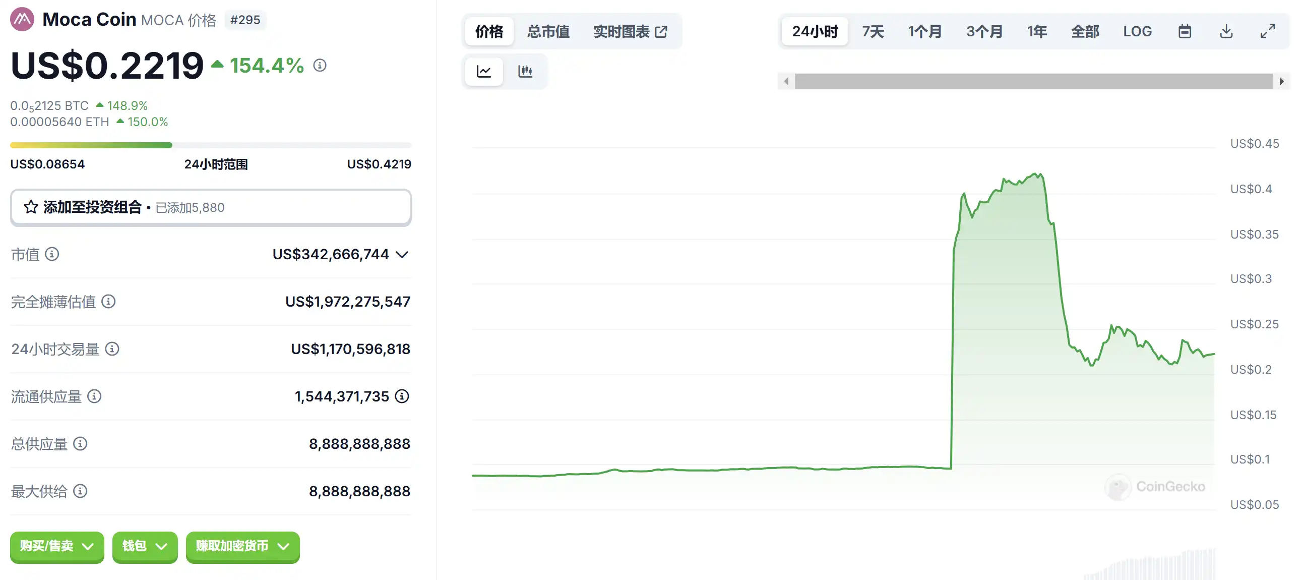 涨幅 41 个基点。MOCA 今日备受瞩目,因其即将在韩国领先的数字资产交易所 Upbit 上市。此次上市有望将 MOCA 的影响力扩展到韩国超过 2800 万已完成 KYC(了解你的客户)的用户,韩国是 Moca Network 的关键市场。这一消息导致 MOCA 价格大幅上涨,据报道涨幅达 3 至 4 倍。此次上市是 Moca 构建跨链数字身份基础设施这一更广泛战略的一部分。此外,MOCA 在 NFT 领域的参与以及与 Animoca Brands 等主要参与者的合作进一步激发了人们的兴趣。