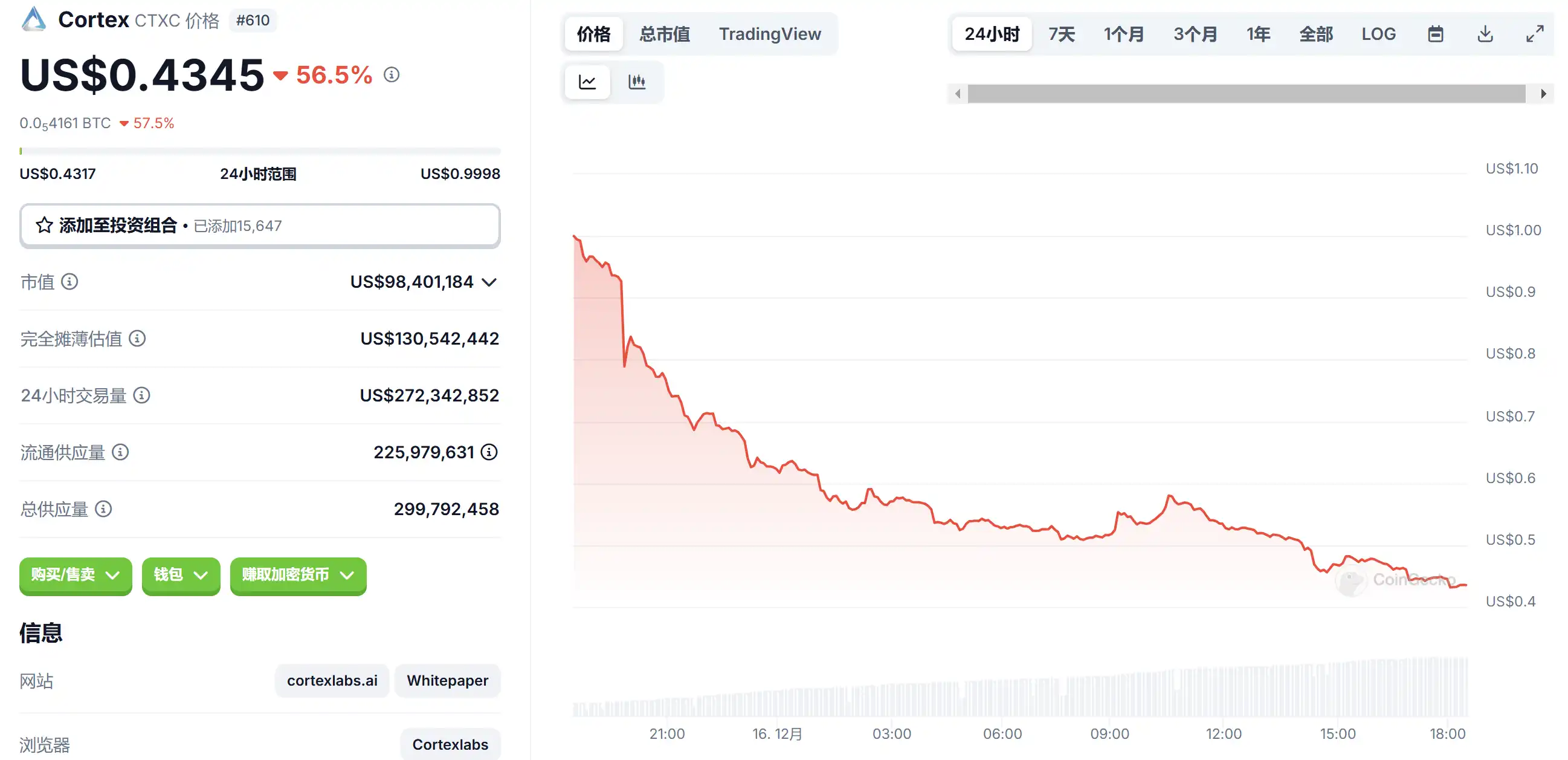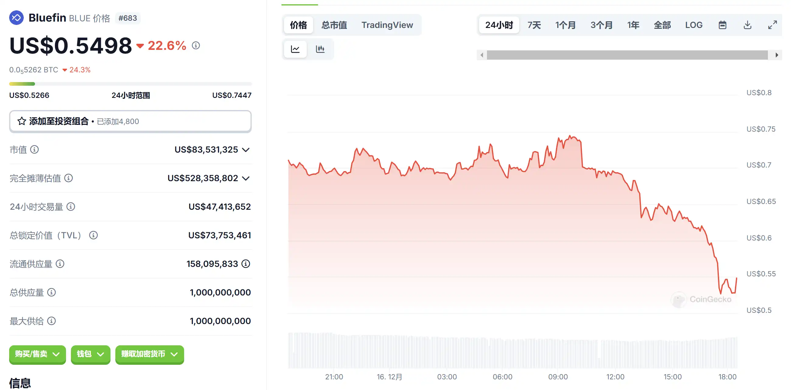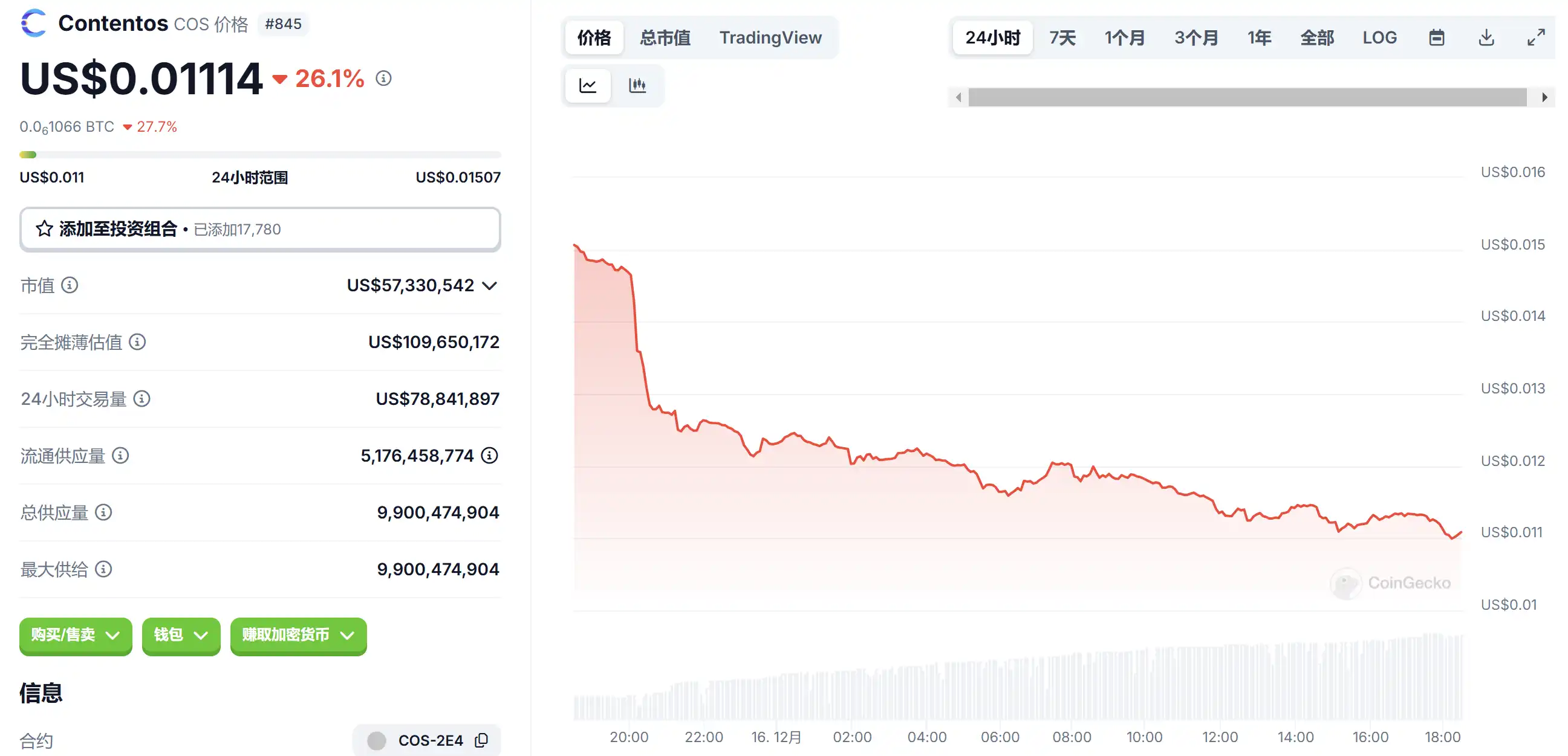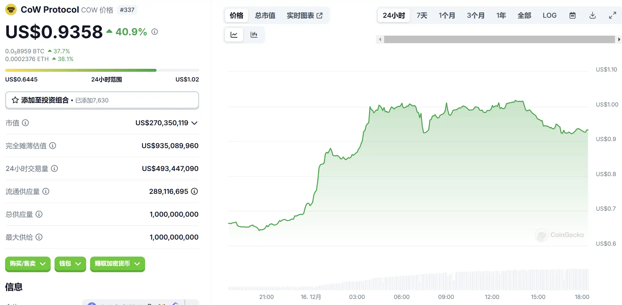 12 月 16 日代币波动情况,按交易量筛选并排列