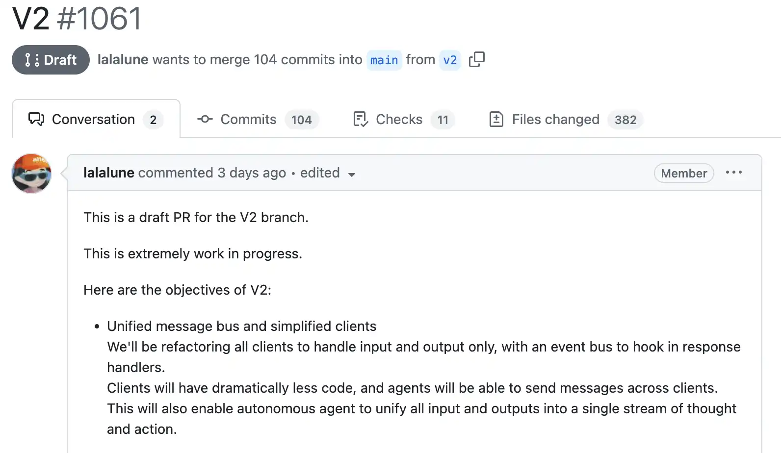 在前几日开放了 V2 的文档,在各个方面都得到了优化,包括提高客户端开发灵活性、跨链钱包管理统一性、模型提供者和集成的灵活、更高效的插件管理、提高了私钥的安全性,今日 Eliza 创始人 Shaw Walter 也在多平台对此次更新进行了直播讲解。