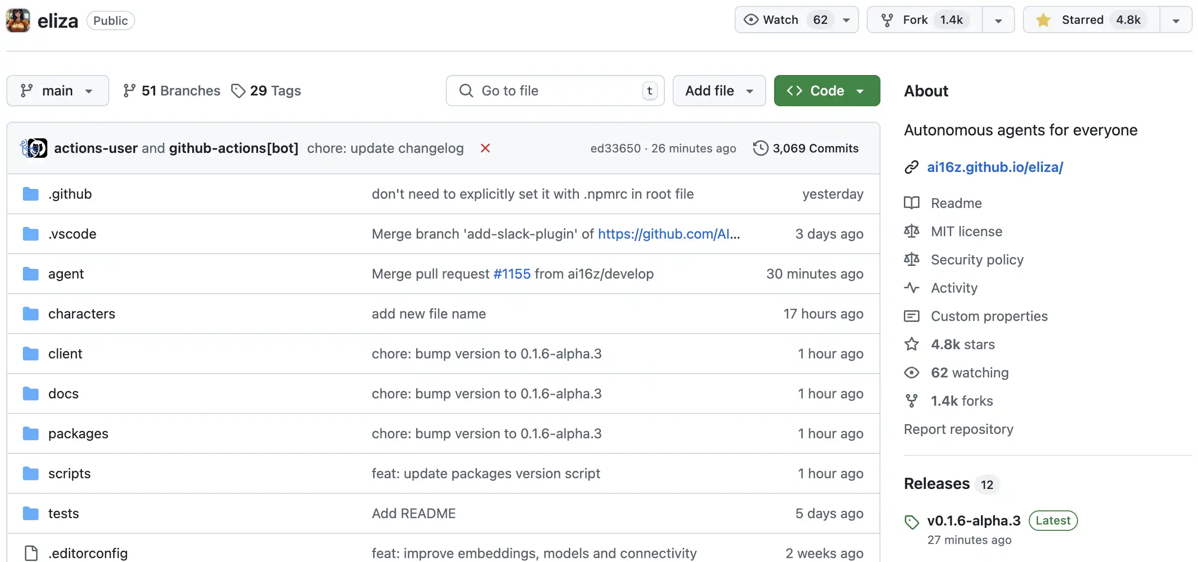 ai16z 背后的架构「Eliza」在 github 是开源的,霎时间获得了开发者的大力支持,拥有强大的开发者社区,这也是 Eliza 能快速发展的原因之一,该代码文档在 Github 上已经有超过 1400 次分叉以及 4800 颗星。