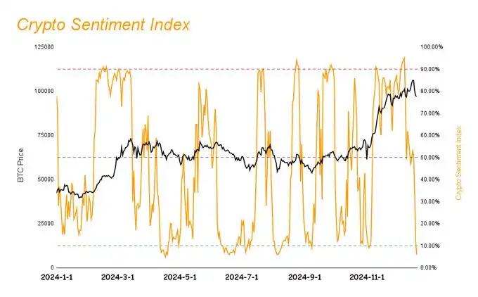 · 加密货币市场本周处于下跌趋势,情绪指数处于极度恐慌。