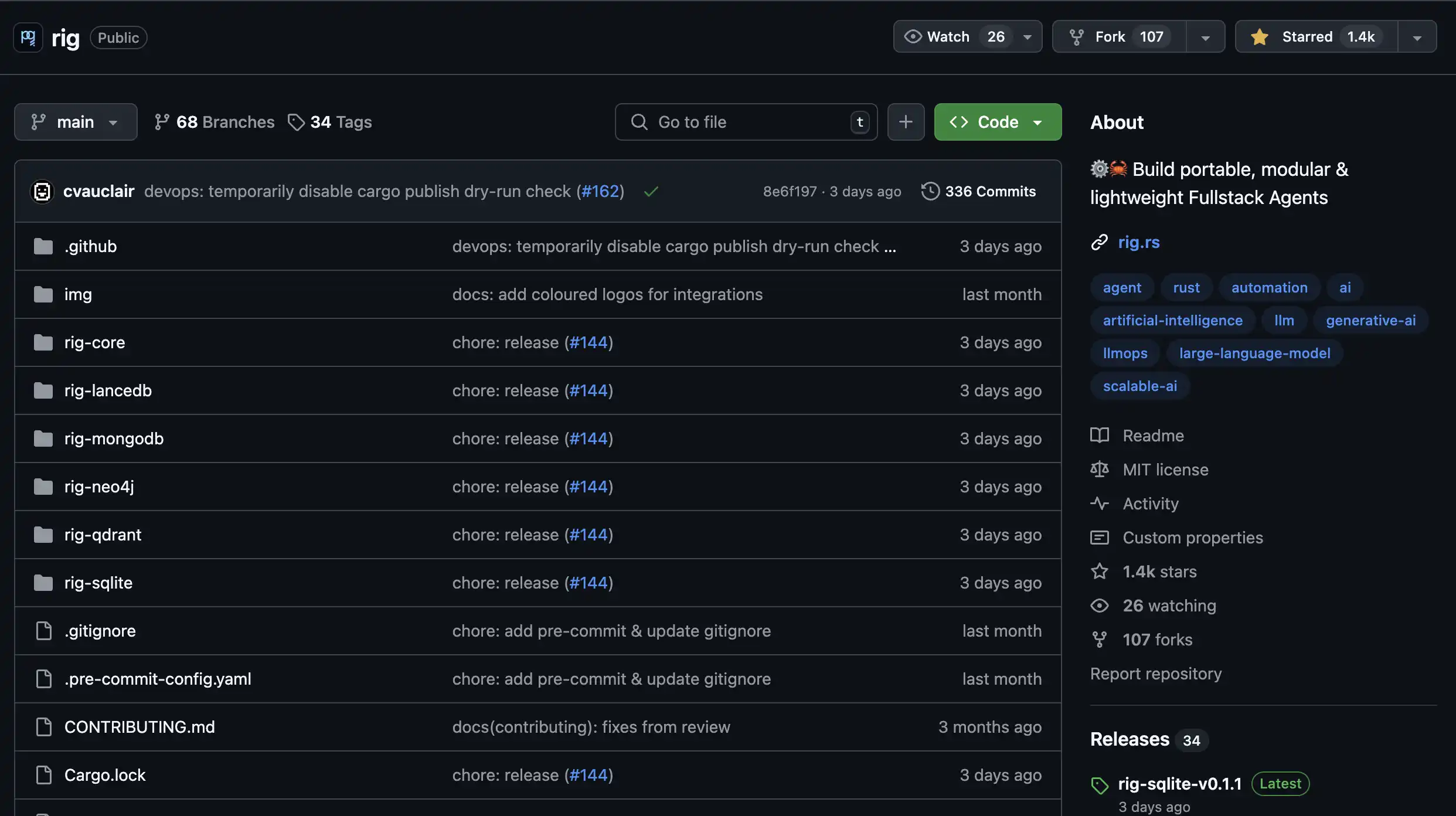 这让 Rig 成为开发高性能 AI Agent 的理想工具,无论是在游戏、机器人、自动化工作流还是实时模拟中都拥有表现优异。该架构允许从本地开发环境到企业级系统的无缝扩展,为机构采用奠定了底层基础。当一个项目为企业级别的客户提供高质量的产品,而不是仅仅供普通用户娱乐时,这些企业级的 AI Agent 在某些案例里甚至可以替代整条产业链,这在 Web2 的 AI Agent 市场已经被验证过了。当前 Rig 在 Github 上已经拥有超过 100 次分叉和 1400 颗星了,而这数据也正在加速增长。