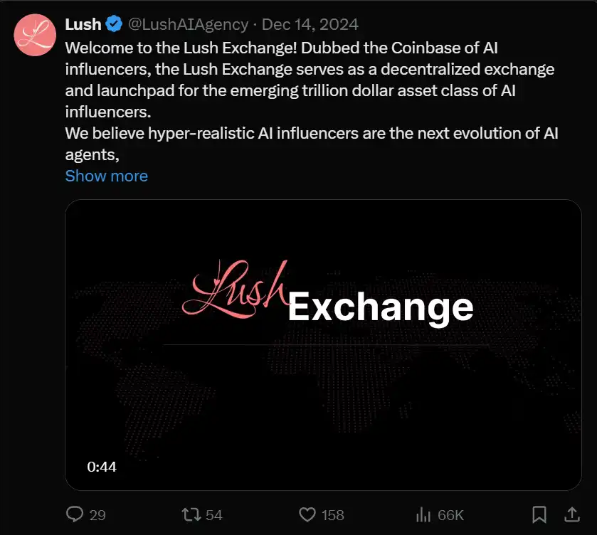 这是一个新兴的细分市场,agent 作为「辣」型网红,全天候与用户互动。Lush、Nectar 和 Oh 是这个领域的主要玩家,但目前只有 Lush 拥有代币。