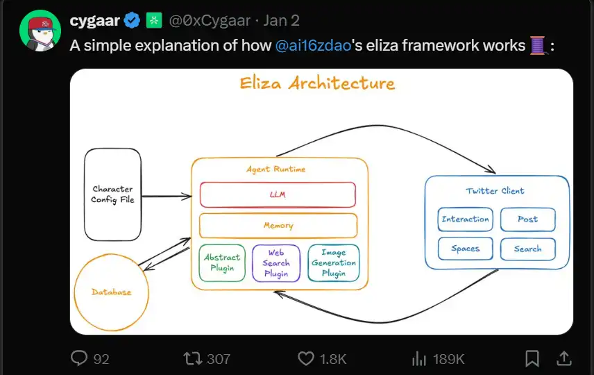 流行的框架代币通过提供开源解决方案为 agent 提供支持。AI16Z/Eliza 是最大的开源框架,但也有其他模型存在。