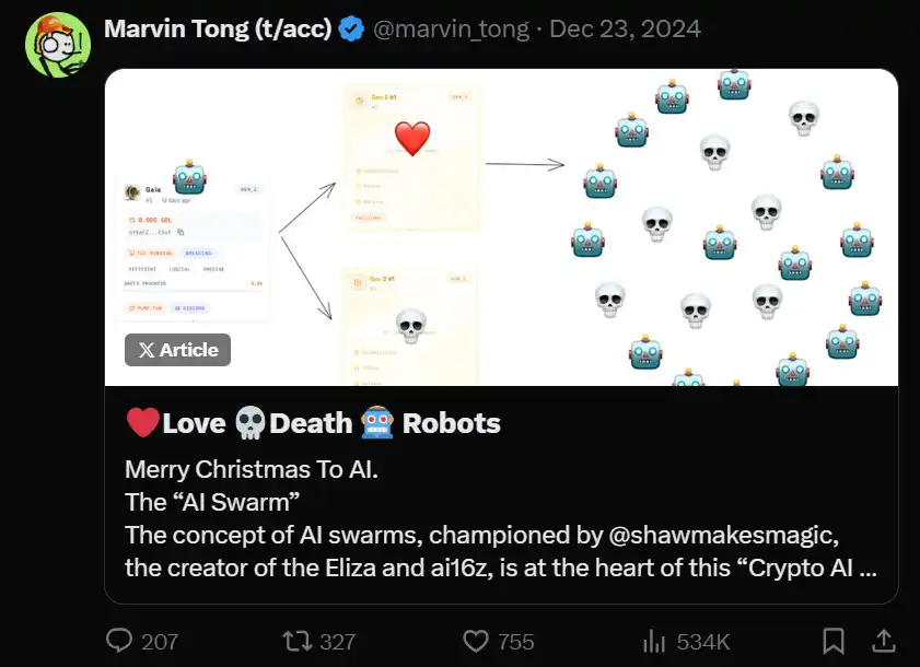 编者按:本文指出了目前 AI agent 碎片化问题,AI agent 的多样化,流动性和关注度被分散在不同领域,本文提到两种 agent 发展路径:一是转型为开源框架,二是继续专注于单一 agent 功能。分析了多个有潜力的 AI 领域,如 DeFAI、NSFWagent、机器人、投资 DAO 等,并建议开发者和投资者应专注于具有长期增长潜力的叙事和产品,最终推动创新者通过简化复杂性建立统一的生态系统。