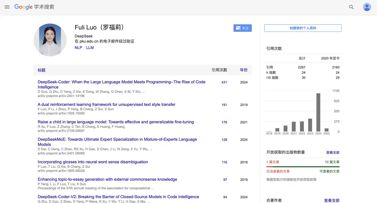 罗福莉于 2022 年加入幻方量化旗下的 DeepSeek,在 DeepSeek-V2 和最新的 R1 等重要报告中都能看到她的身影。