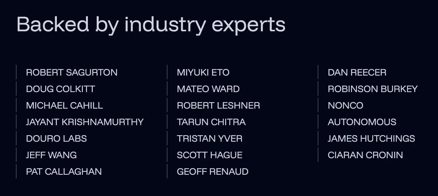 • 以及由 Synthetix 和 Infinex 创始人 Kain Warwick 领导的 Patrons 投资 50 万美元。
