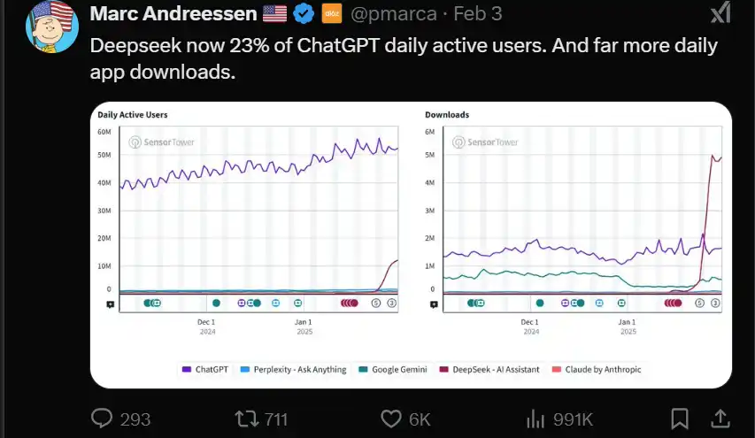 ·DeepSeek 的推出导致了美国科技股和 AI 股票的大规模抛售,显示出市场对 AI 成本削减的担忧。