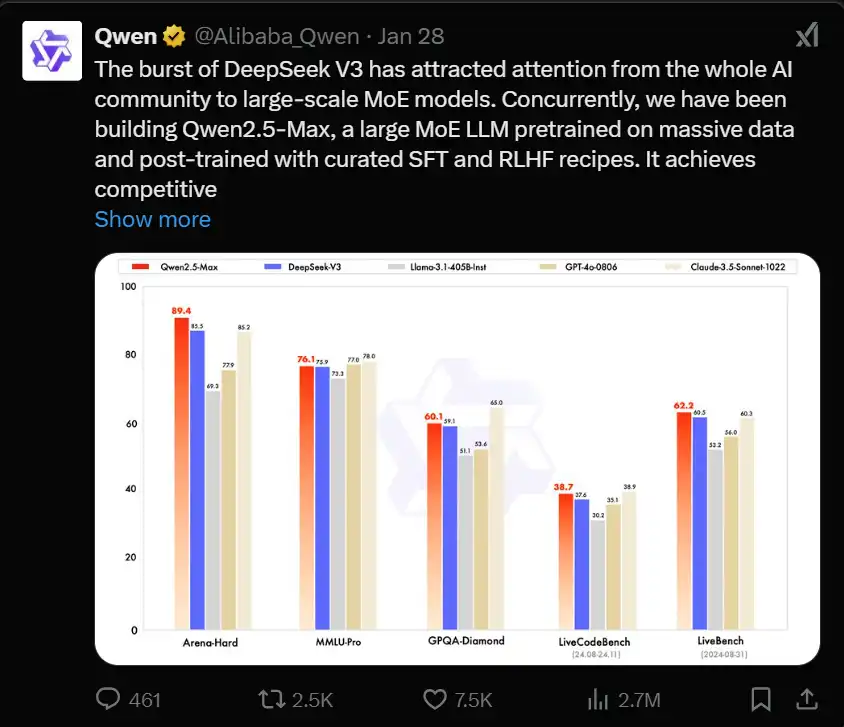 1 月 31 日—来自阿里巴巴的 Qwen 推向市场,认为其质量优于 Deepseek。这些模型的进展将提升利用它们的 agent 的输出效果。