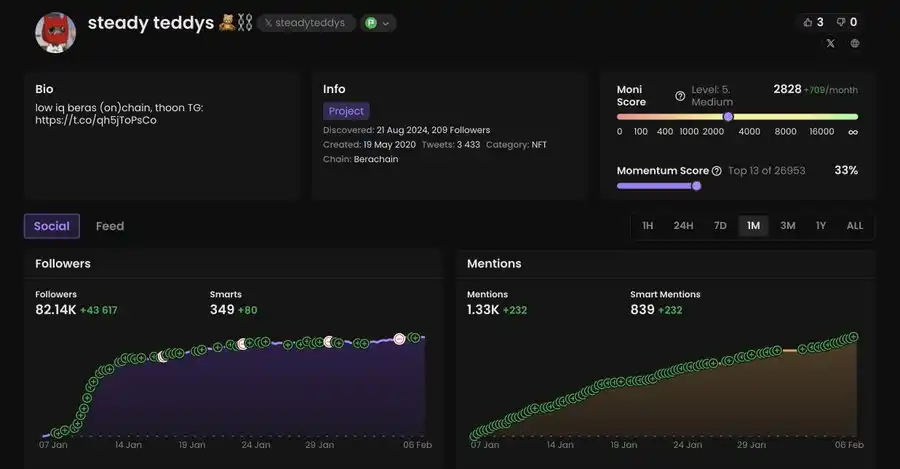 Steady Teddys 是 Berachain 上除了官方系列之外,最强大的 NFT 收藏。该系列的头像被 Berachain 生态系统中的许多成员使用。