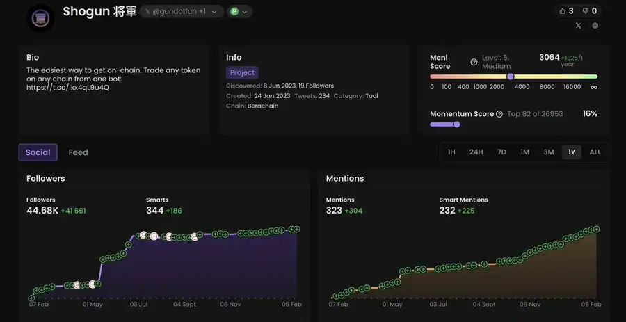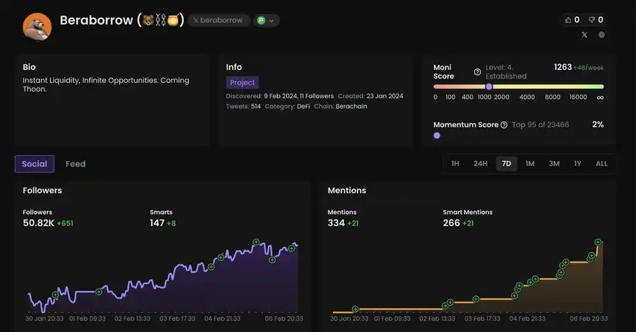 操作建议:NFT 持有者的快照已经完成,他们将获得即将在 2 月中旬 Ramen Finance 上进行的 $BERAMO 代币销售的 WL(白名单)。你可以考虑参与公开销售阶段。