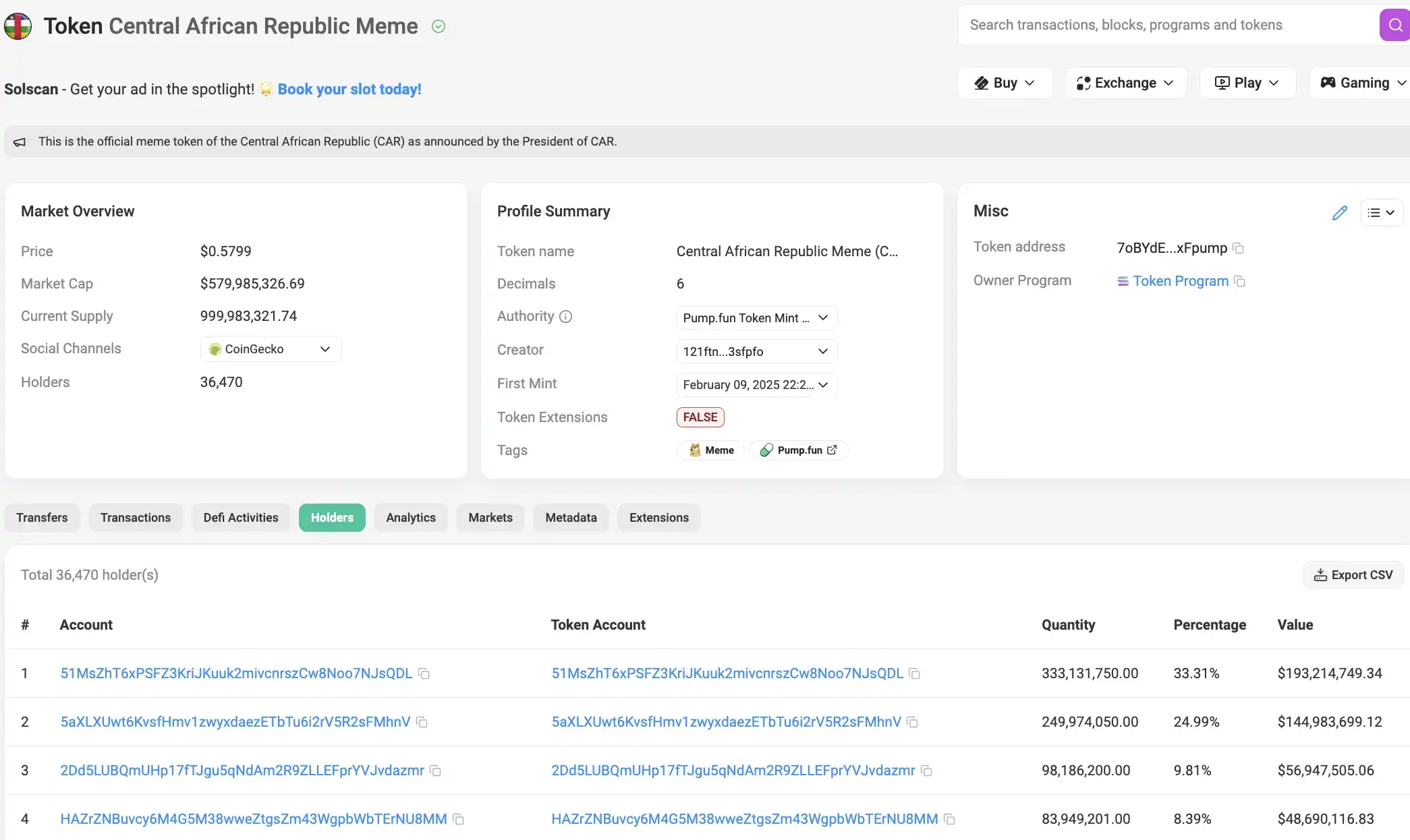 CAR 是否为中非总统官方 Meme 币,仍然步步疑云。