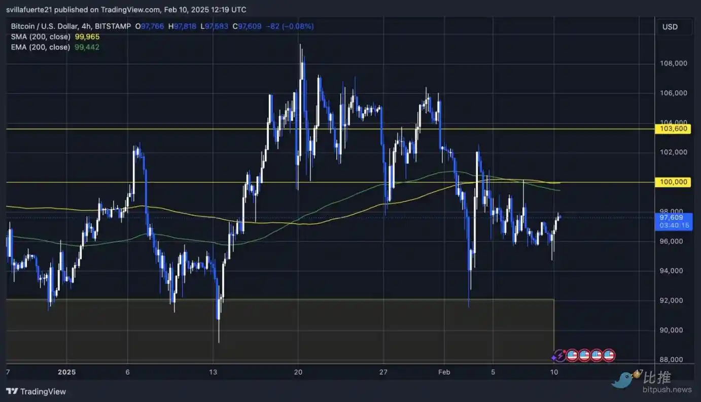 TradingView 数据显示,比特币当前价格在 97, 600 美元附近徘徊,分析师 Sebastian 认为,要重新点燃看涨势头,比特币首先需要站稳 98, 000 美元这一关键水平,这将为突破 10 万美元的心理关口奠定基础。一旦比特币成功突破并站稳 10 万美元大关,将确认多头动能的强势回归,并有望进一步上探更高的供应区间,开启新一轮上涨行情。