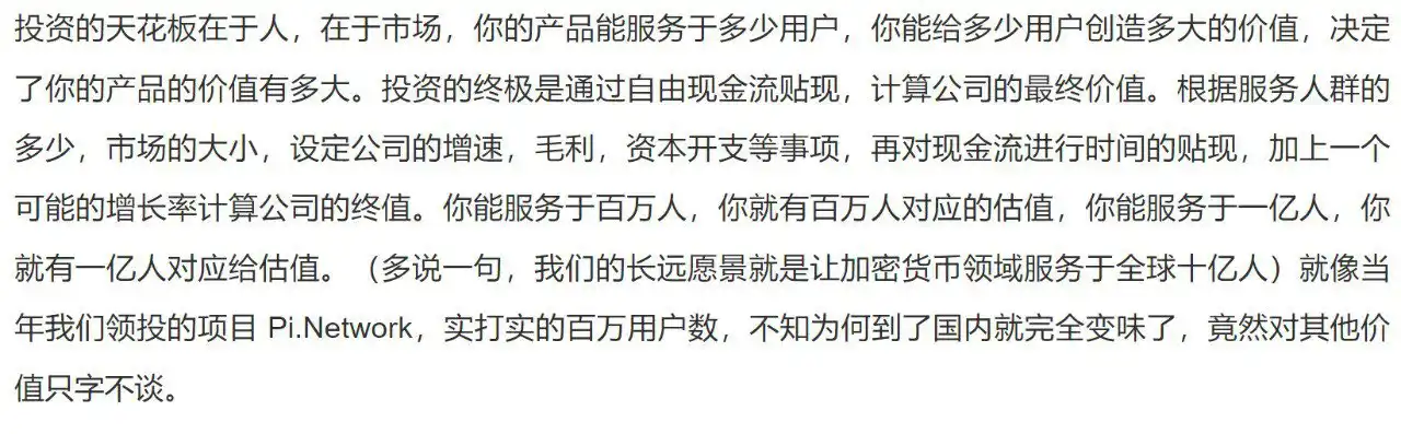 Pi 的宗教经验:我们一般把宗教经验称为玄学,那些不可证伪但又让你的信仰不可被质疑的主观体验,比如水逆、求签灵验等等。个人认为这里 Pi 做的非常聪明。2019 年熊市寒冬中,几乎所有项目都在证明自己可以」实体落地「,锚定 XX 实体资产的增长价值。Pi 的故事是注意力市场,类似 BAT。但 Pi 比 BAT 聪明得多。