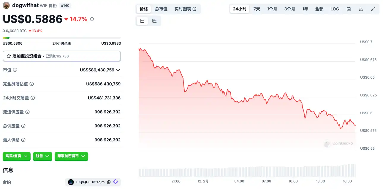 2 月 12 日代币波动情况,按交易量筛选并排列