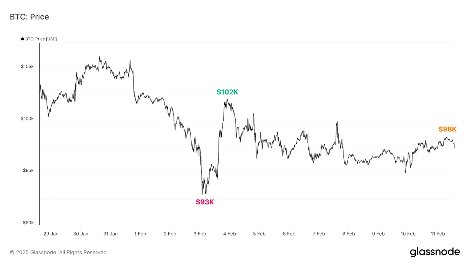 上周,比特币投资者经历了价格的剧烈波动。BTC 价格最初跌至 93,000 美元的低点,随后短暂回升至 102,000 美元,目前交易价格接近 98,000 美元。这种犹豫不决的价格走势主要是对特朗普总统威胁对加拿大、墨西哥和中国征收关税的回应,这为投资者提供了不确定的宏观背景。除此之外,美元持续走强也导致流动性环境略显紧张。