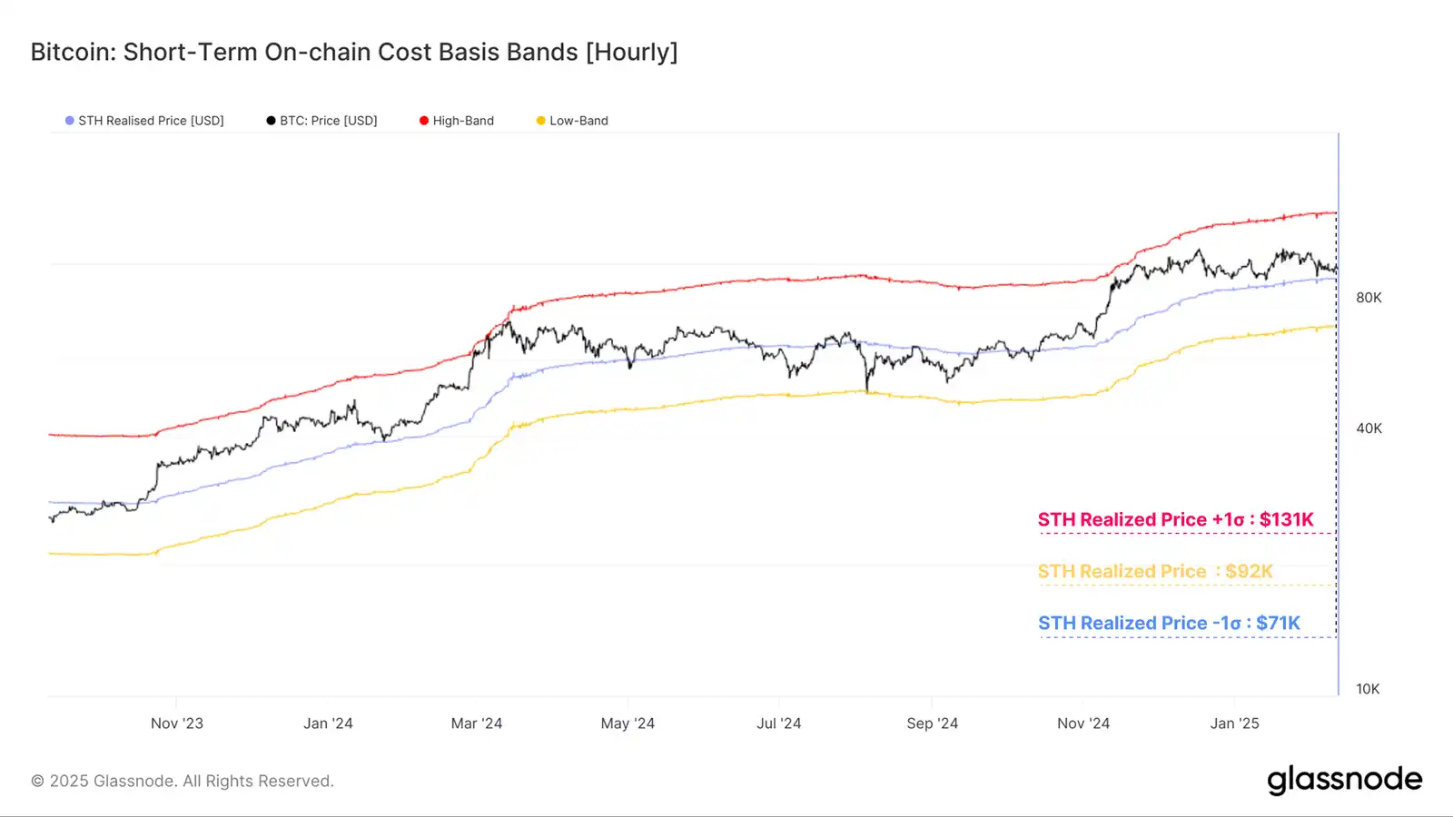 历史上,短期持有者的平均成本基础在牛市上升趋势中也起到了强有力的支撑位的作用。该定价模型目前的交易价格约为 92.2 万美元,是市场避免进一步下跌的关键区域。