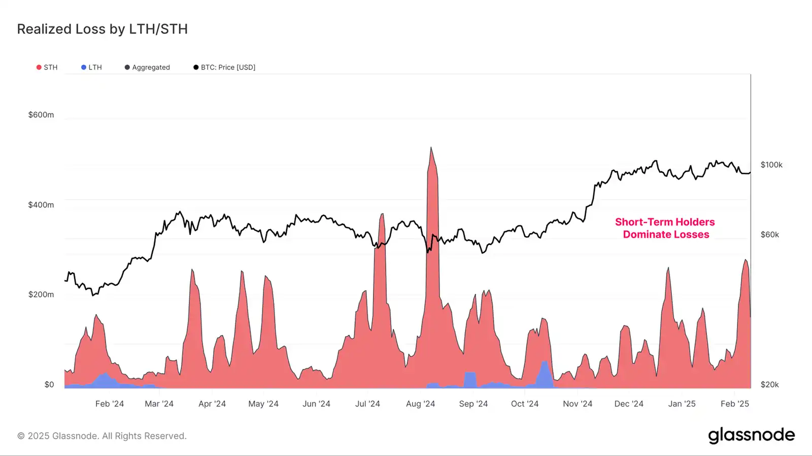 这强化了这样一种观念:大部分链上交易量和已实现损失往往与最近进入市场的投资者有关,因此他们对波动性和价格波动最为敏感。