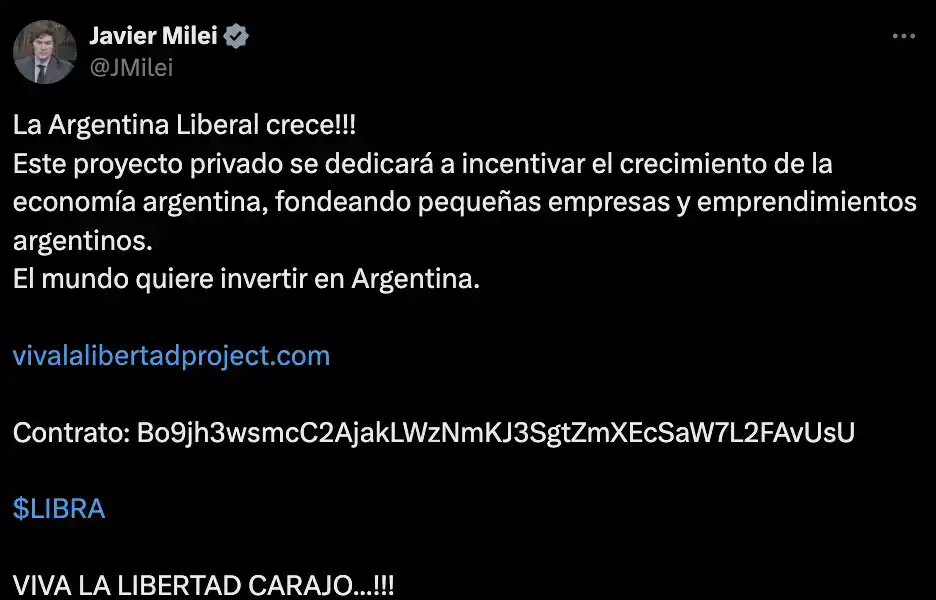 LIBRA 背后团队回应:Milei 总统未参与 LIBRA 项目开发,感谢大家的支持和信任
