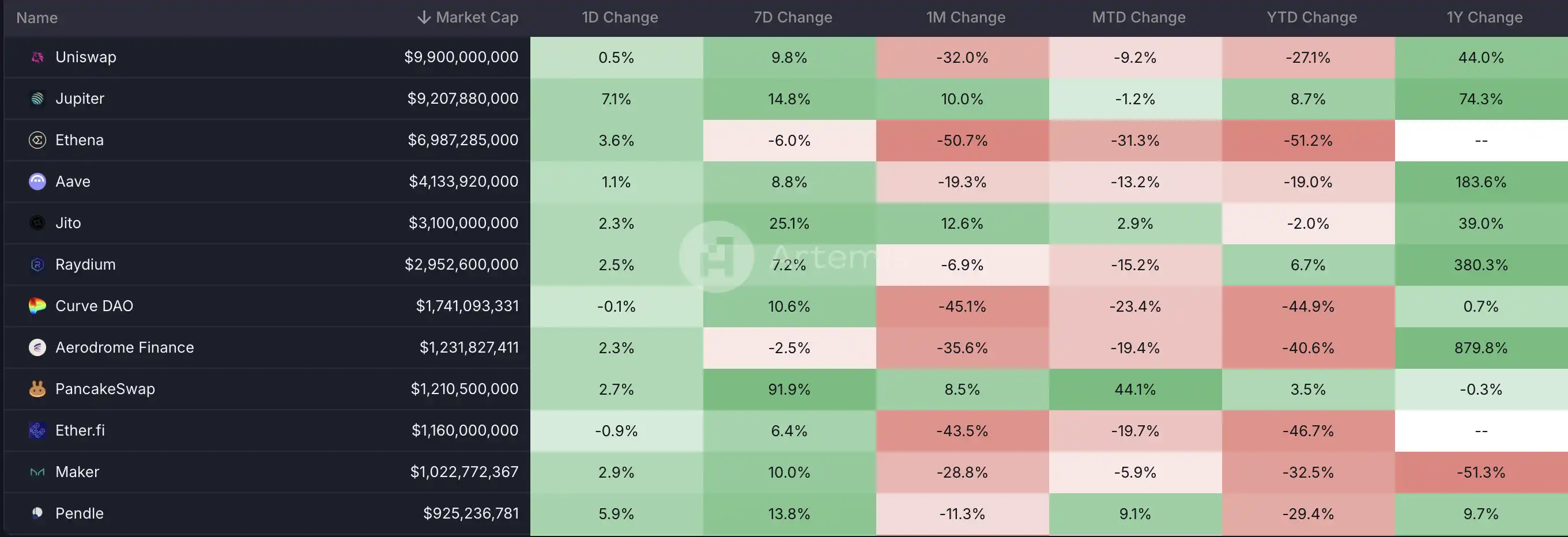 而到 2023 年,公开数据显示其已经成为 Solana 生态中最大的 DEX,占据链上超过 50% 的代币互换份额。简洁的界面设计、便捷的跨链支持,以及对机构级交易需求的精准把握,使 Jupiter 迅速成为专业玩家的首选平台。发展至今$JUP 的市值已经仅次于老牌 DeFi 龙头 Uniswap 了,新的 DeFi 霸主俨然诞生了。