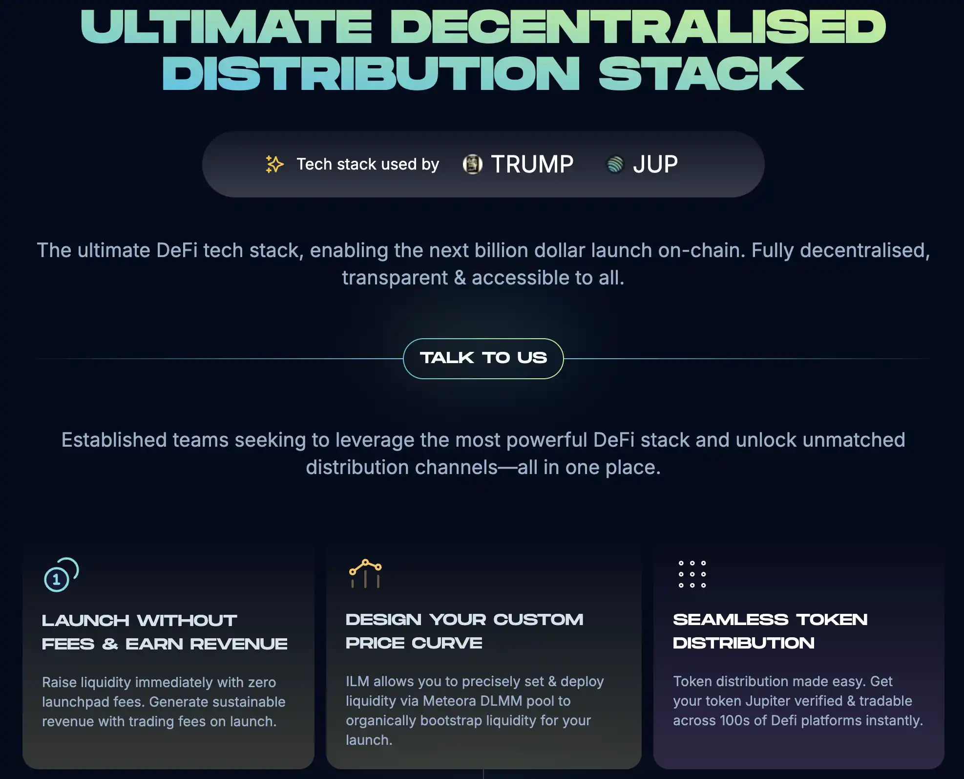 此外,Jupiter 还收购了主打移动端 Meme 交易的平台 Moonshot 的多数股权,扩大了其在 Meme 币交易领域的影响力。而和原 Jupiter 团队开发的 Meteora 打造的融合发射、价格曲线和分发渠道的代币发射技术栈「LFG」则在这次特朗普家族发射的$TRUMP 交易中获得了验证。