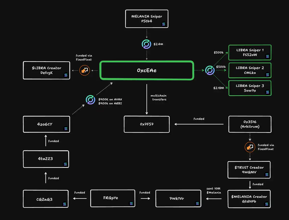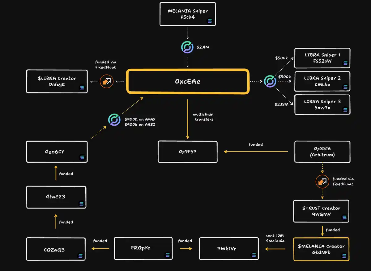 MELANIA / LIBRA 的创建者不仅通过发行代币牟利,还利用内幕信息进行狙击交易,仅在 LIBRA 一项上就赚取了超过 1 亿美元。