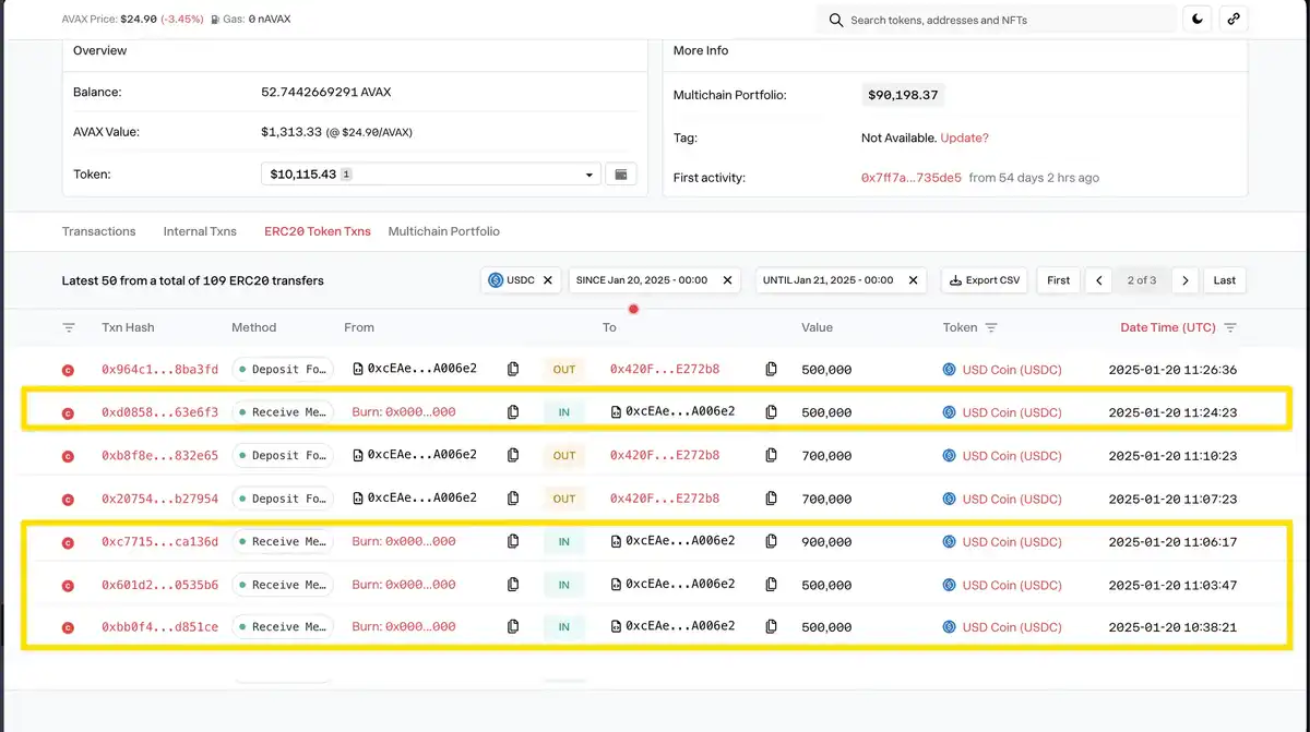 他们通过多个侧链地址进行操作,而这些地址的资金都来自 CCTP 资金流转。