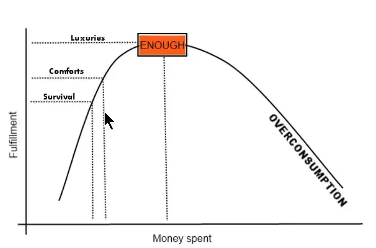 这个点对每个人来说都是不同的。你花掉的前几美元会带来更多的幸福,因为据推测,你把这些钱花在了能带来更多效用、对你来说更重要的事情上。