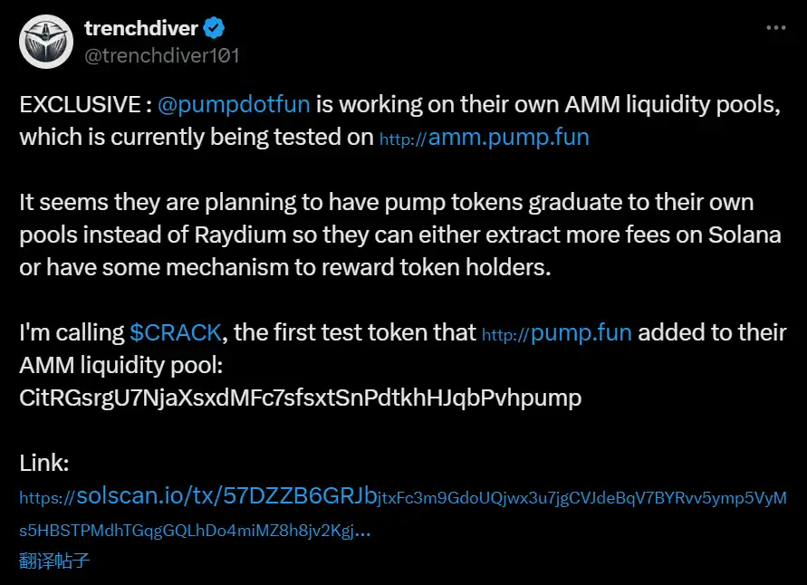 1.Pump.fun 上线 AMM,@trenchdiver101