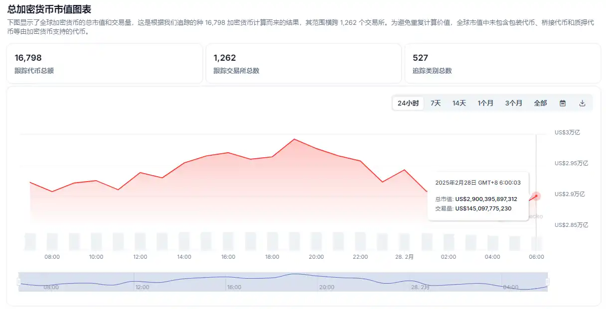 整体加密市场市值从 3 万亿美元跌至目前的 2.9 万亿美元,蒸发了 1000 亿美元。