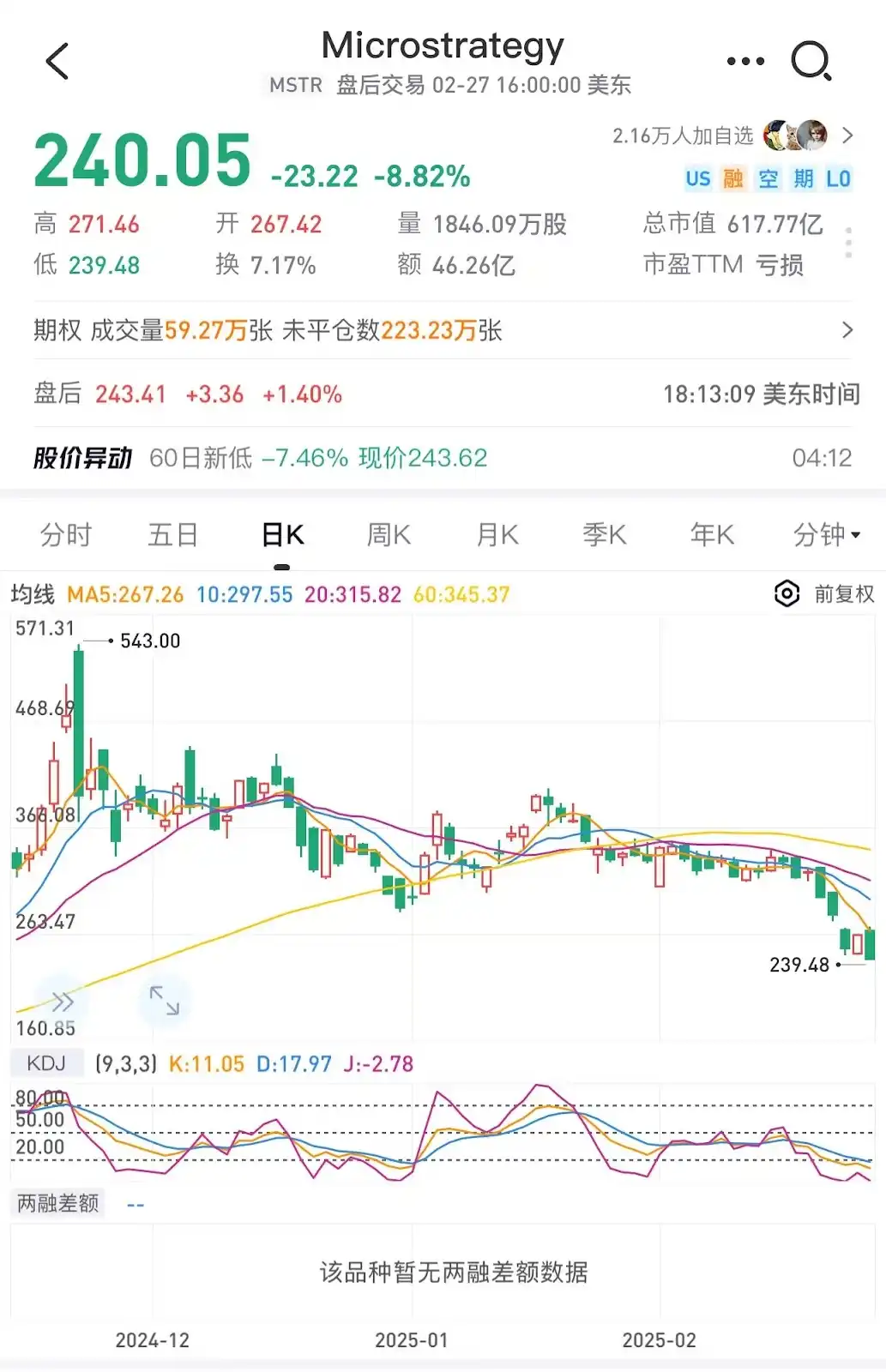 此外,Microstrategy 也在今天凌晨下跌近 9%,过去三周下跌超过 30%。