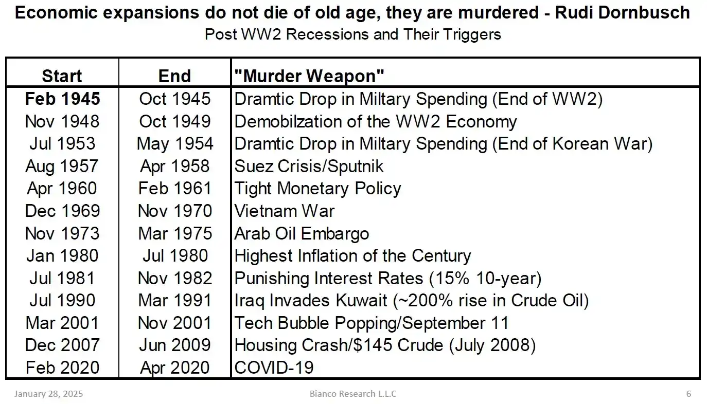 让我们用最近的经济史来检验这条定律 (感谢 Bianco Research 提供的这份出色的表格)。