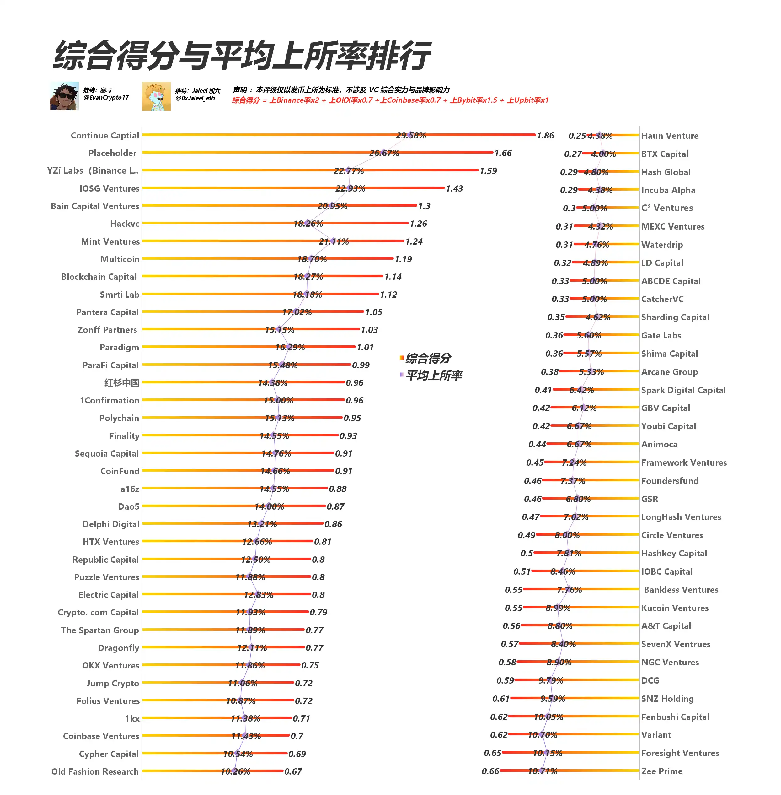 我们依据各 VC 过往投资项目的上币成果,结合「BN、Bybit、Upbit、OKX、Coinbase」五大权重,重新计算得到的排名结果呈现出若干关键变化: