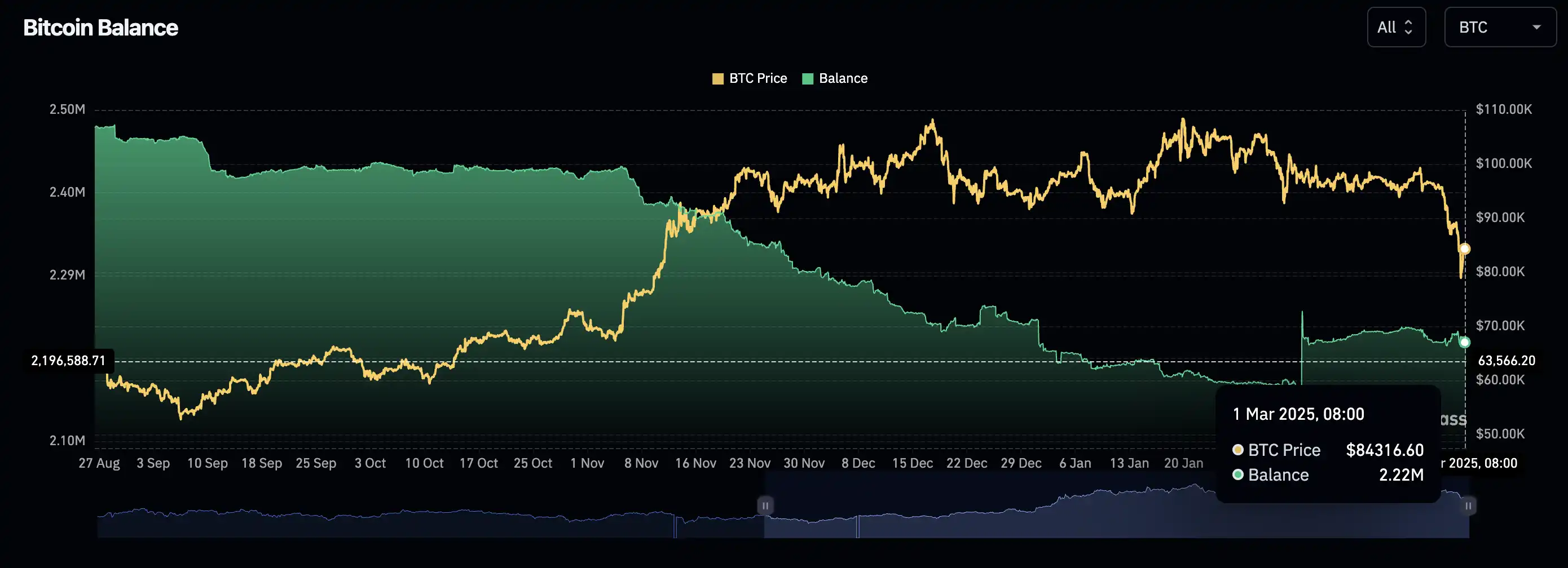 当前交易所比特币余额为 222 万枚,也是这一特征的反应。
