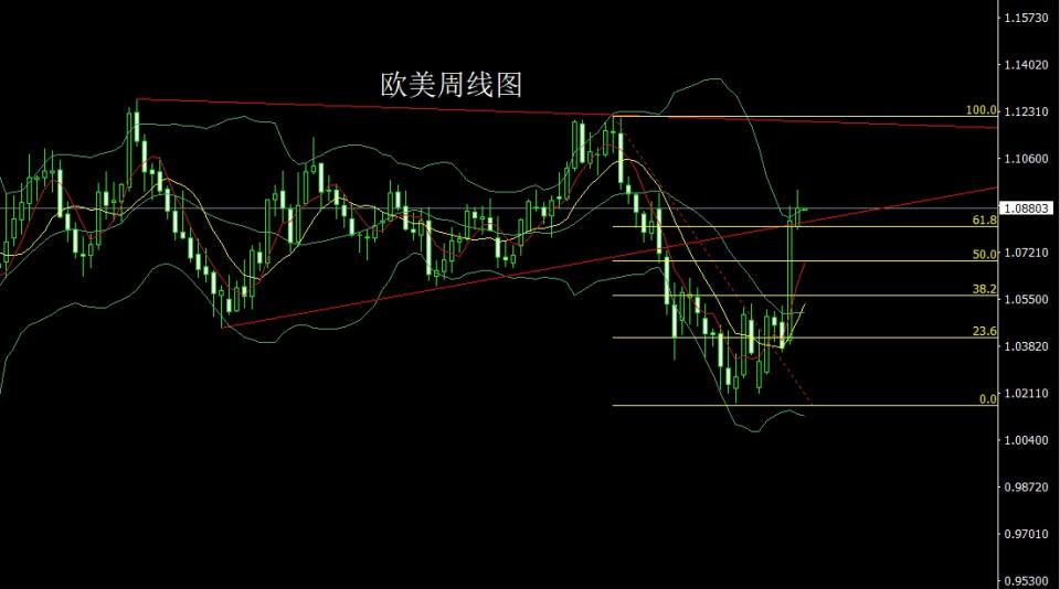 欧美市场上周低开在1.08165的位置后行情先回落给出1.08018的位置后行情强势拉升,周线最高触及到了1.09478的位置后行情区间整理,周线最终收线在了1.08812的位置后行情以一根上影线很长的中阳线收线,而这样的形态收尾后,今日先回落给出1.08400多止损1.08200,目标看1.08900和1.09200和1.09400.