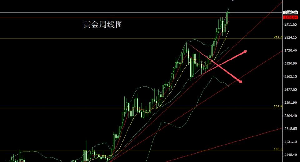 上周黄金市场周初开盘在2912.9的位置后行情周初先回落,周线最低给到了2880的位置后行情受到避险情绪影响行情强势拉升,破位前期历史高点2957的位置后行情加速上行,到周五周线最高触及到了3005.2的位置后行情整理,周线最终收线在了2986.1的位置后行情以一根下影线稍长于上影线的大阳线收线,而这样的形态收尾后,本周市场在周初调整后行情有继续看多需求点位上,上周2940和2958的破位多减仓后,止损跟进在2956持有,今日3000空保守3002空止损3006,下方目标看2978,跌破看2972和2967和2962离场反手多。