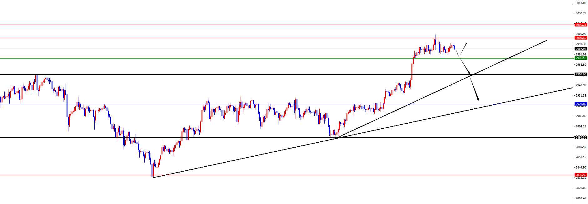 黄金关注四小时支撑2976得失,一旦下破关注后续延续(右侧交易方式对待)