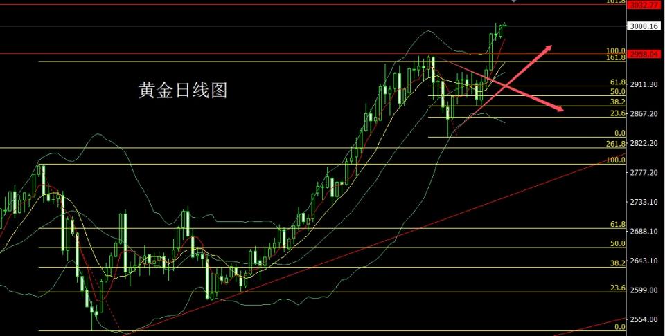 昨日黄金市场区间震荡,早盘小幅低开在2984.7的位置后行情先拉升给出2994.4的位置后行情回落,日线最低给到了2982的位置后行情强势拉升,日线最高触及到了3002的位置后行情整理,日线最终收线在了3001的位置后行情以一根下影线稍长的中阳线收线,而这样的形态收尾后,小时形态时间换空间盘整,周五的射击之星压力被转化今日的行情回踩多,点位上,上周2940和2958的破位多减仓后,止损跟进在2956持有,今日先回落给出2992多止损2986,目标看3002和3005压力,破位的话看3012和3020和3032压力。