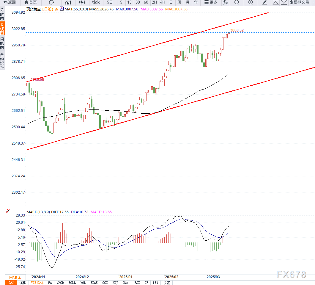 综合来看,黄金短期内仍具备上行潜力,但需关注政策动向与全球经济数据的进一步发展。UBS已将黄金目标价上调至3200美元,如果贸易紧张局势升级,不排除进一步突破的可能性。