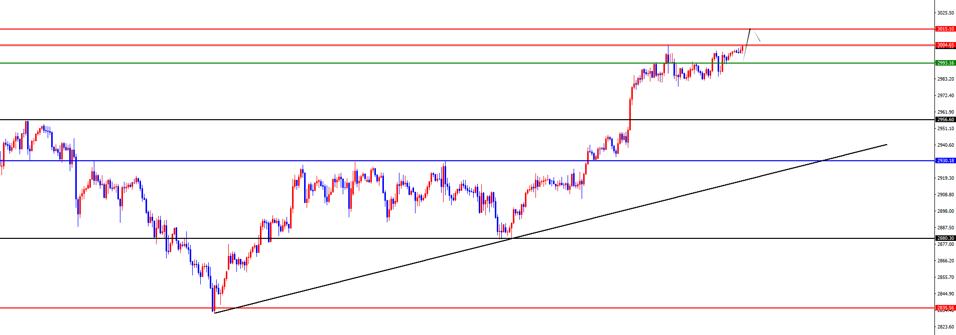 黄金2993-2994区间多,防守10美金,目标3005-3015