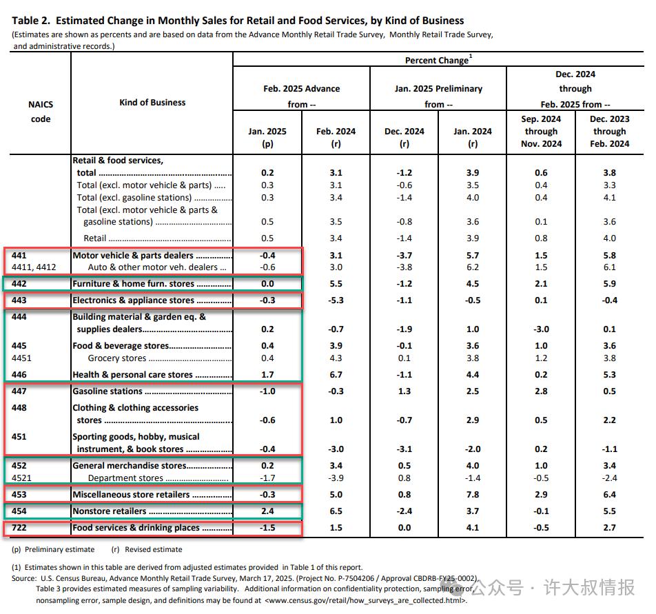 13个零售类别中有7个出现了下降,尤其是汽车销售。