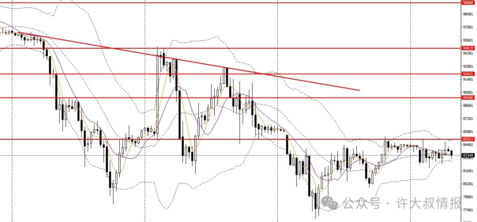 比特币小幅反弹,继续围绕5日、10日均线震荡,日线RSI仍位于50下方,4小时再度于85000一线遇阻,短线仍趋于震荡,可保持观望。