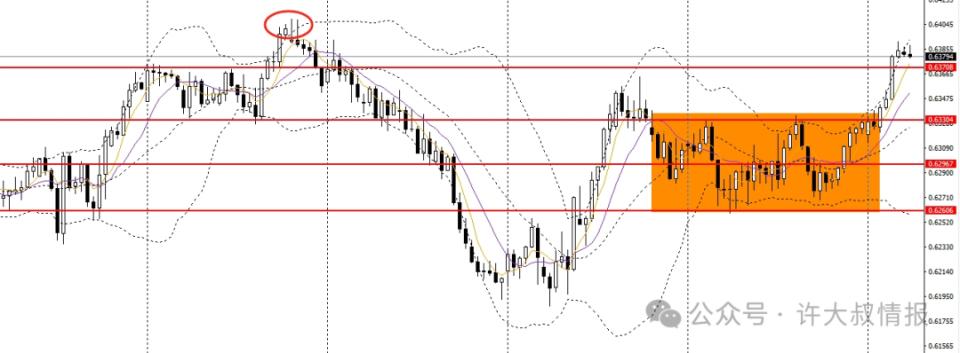 澳美大幅拉升,上破0.6370附近压力,日线RSI位于50上方,4小时彻底升破震荡区间上沿,多单可继续持有,短线有望上探0.64附近。